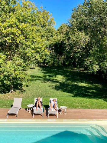 Les après-midis sont dédiées au repos et à la relaxation. Selon la saison, vous pourrez profiter d'une sièste au bord de la rivière ou de la piscine , de lectures ressourçantes sur un transat ou dans un hamac sous les arbres, d'un moment cosy au coin du feu.